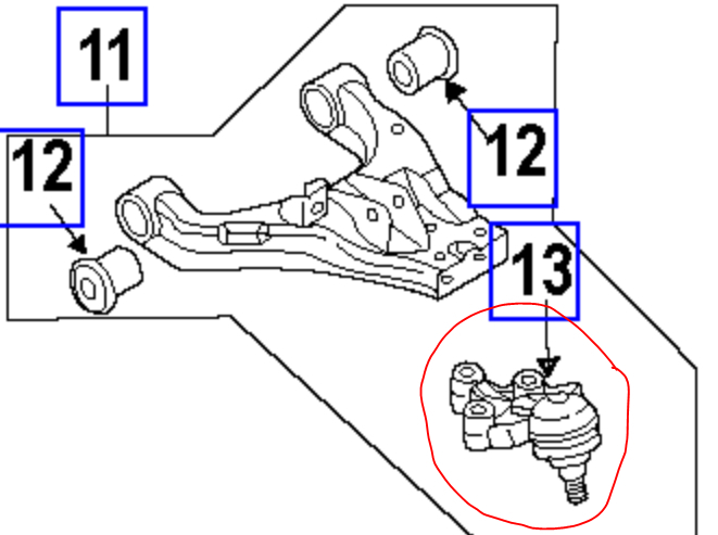 Additionally, I attached an exploded view of the front suspension. Safely lift one front wheel off the ground and inspect the parts I highlighted for damage, excessive play, or something broken. Also, if there is a problem with one of the ball joints (excessive play pics 2 and 3), stop driving the vehicle until a repair can be made. All other components are less likely to cause total failure, but all can.