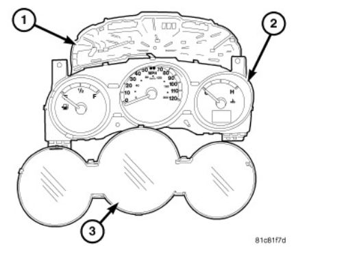 The instrument cluster will simultaneously begin to illuminate all of the operational segments in the VFD units, and perform a bulb check of each operational bus message-controlled LED indicator. The VFD segments and LED indicators remain illuminated as each gauge needle is swept to several calibration points and back. If a VFD segment or an LED indicator fails to illuminate, or if a gauge needle fails to sweep through the calibration points and back during this test, the instrument cluster must be replaced.