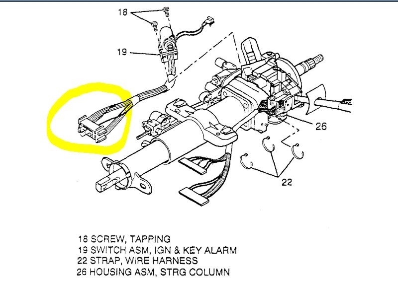 - Wire harness from slot in steering column housing assembly (26).