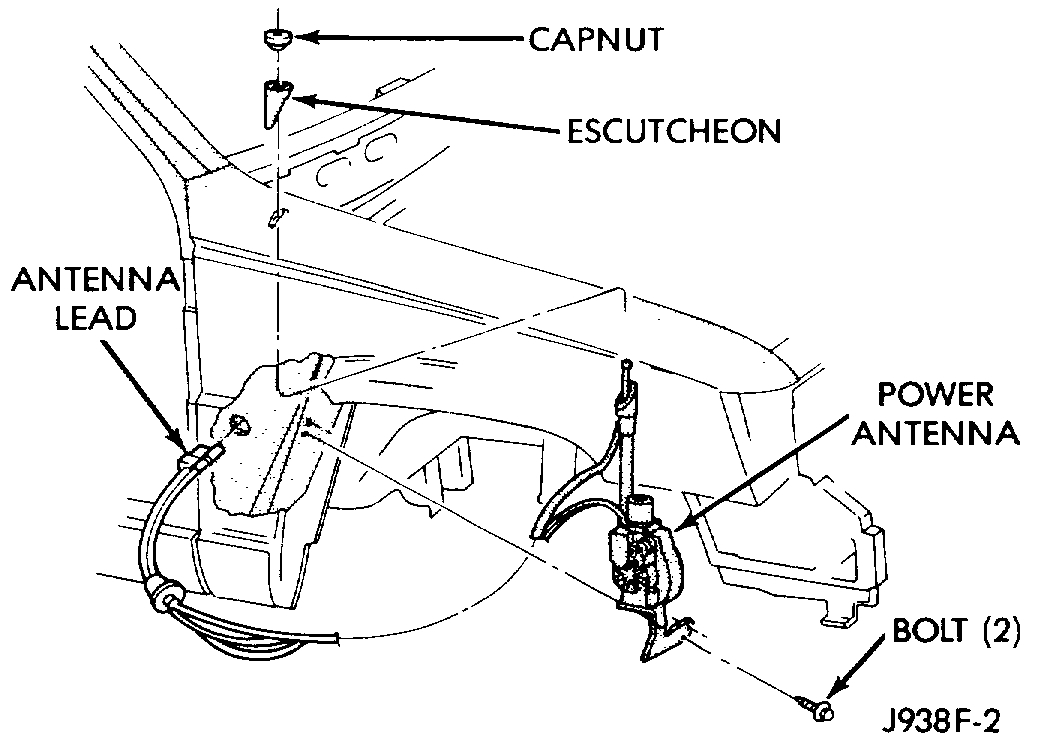 3. Remove the antenna cap nut and escutcheon from the top of the fender.