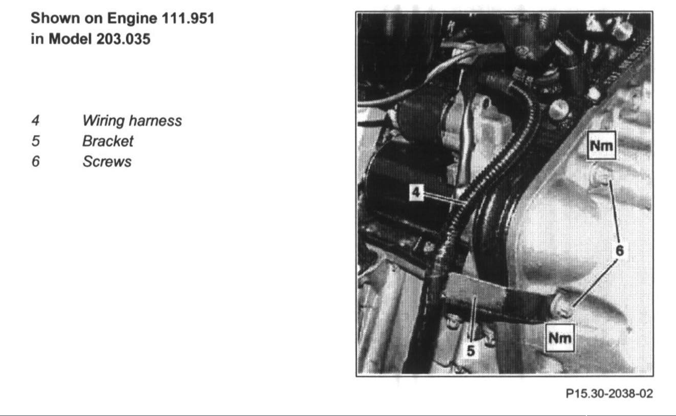 8 Place bracket (5) and wiring harness (4) to the side