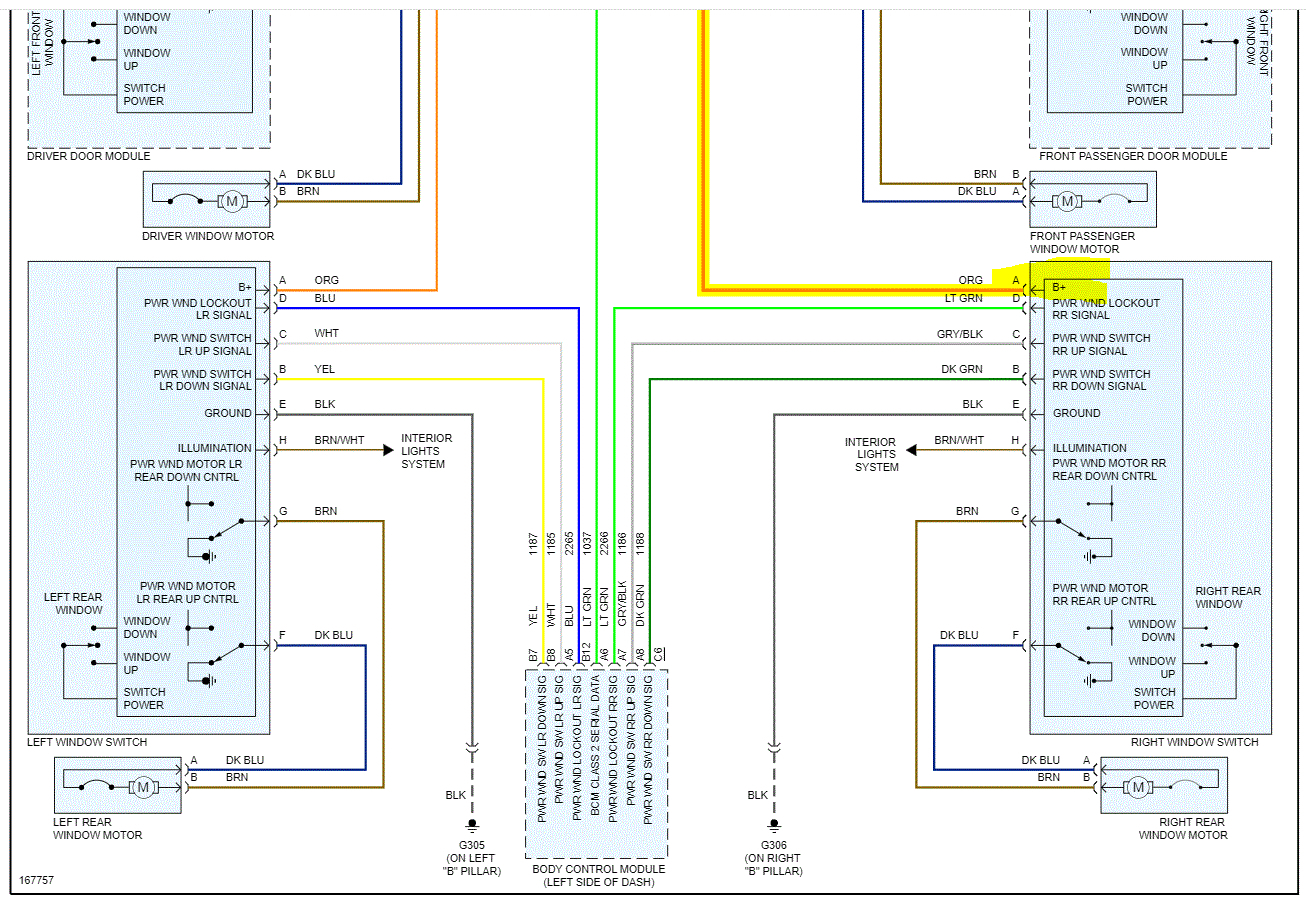 My rear passenger door doesn't have power but is getting signal from the main window switch. I checked the front passenger door for power, and it does have 12v at it, but the rear has only 2v and I have a proper ground at the door. Please help.