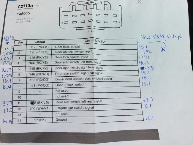 As for the voltage, those voltages are off as well. You have 18 volts on the output and a number of switch inputs on door ajar switches.