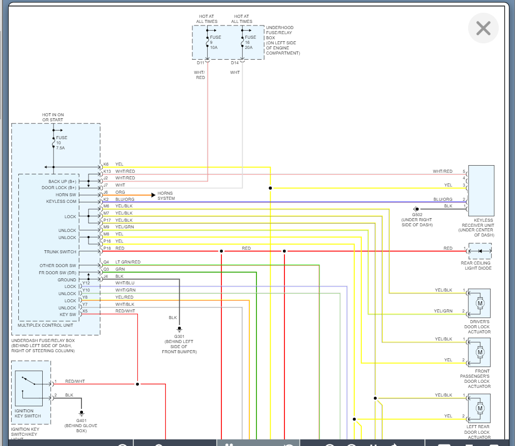 The way to test this is to monitor the voltage on the Back up B+ and the Door Lock B+ and you should have 12 volts all the time on these circuits.