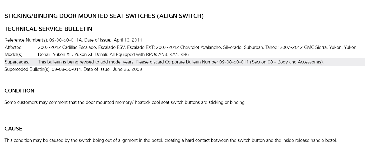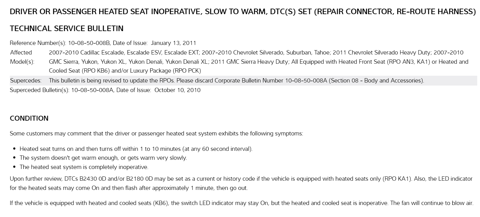 So, the second diagram just shows the example of how the Driver Door Lock/Window Switch Module interacts with the seat heater controls. The fact that you have a Brake Pedal Adjuster Failure too, brings in another variable.