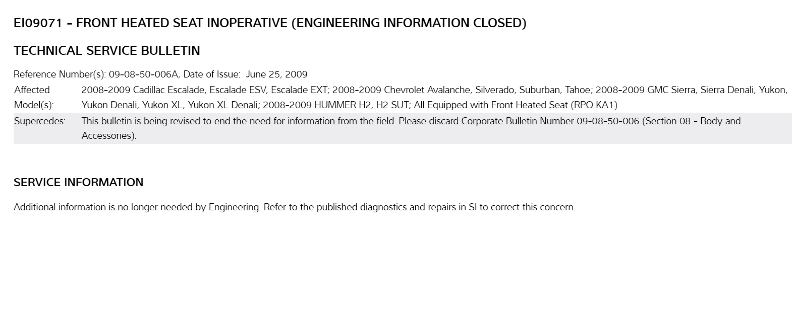So you're positive you have fully working seat heat and movement of the passenger seat, all except the indicator?