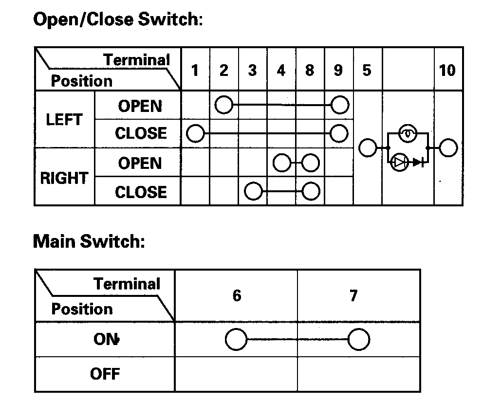 3. Check for continuity between the terminals in each switch position according to the table.
