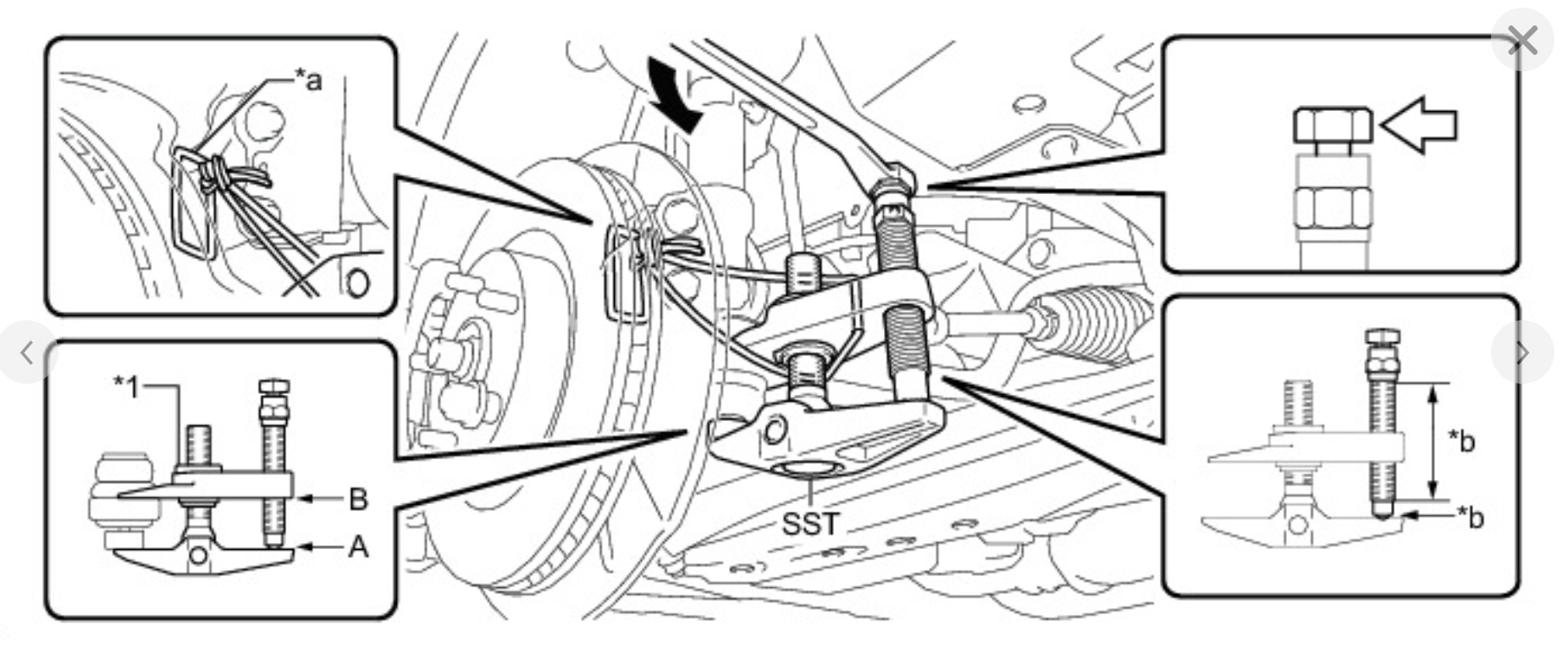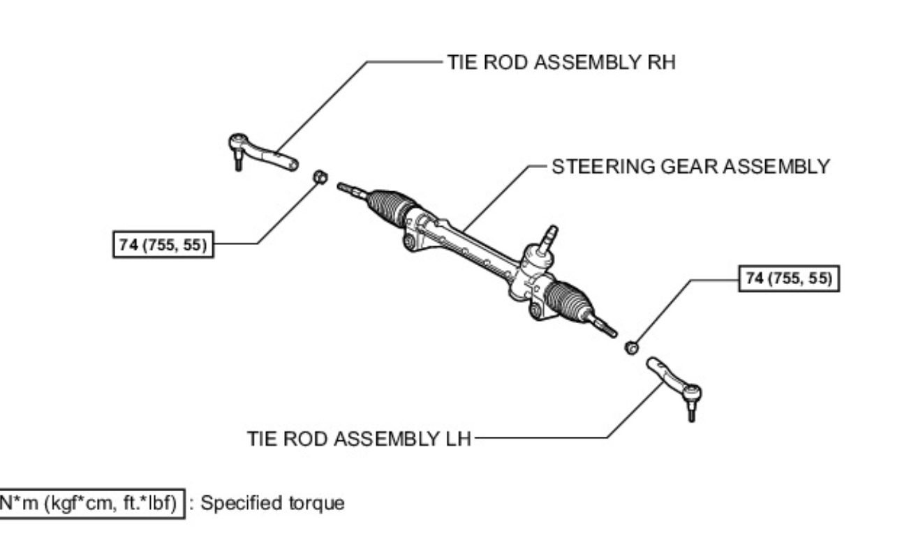 Make sure that the lower ends of the tie rod assembly LH and SST are aligned.