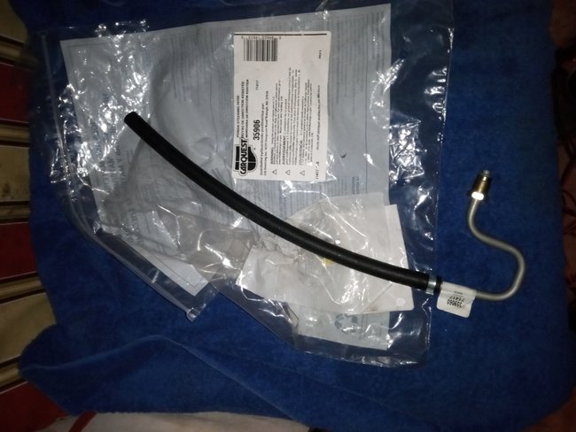 I'm in the process of changing my power steering pump & hoses. Everything is fine except for one hose (bought the replacement at Advanced Auto part 35906) the problem is, I don't know if truck has hydro-boost or if this indeed is the right hose. You can see in the picture the original hose runs out of site and I can't see you exactly where (and yes, I crawled under truck to look). The empty spot you see next to the line running is where the other hose off power steering pump ran to and has already been took off and replaced. Does the hose I'm talking about plug there and if so, what about the extras (maybe somebody worked on it and that's all they had, ) I took the best pictures I could, I work, and this is all being done at night and trying to stay quiet for the neighbors.