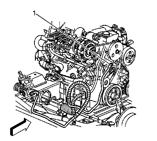 3. Remove the power steering return hose from the power steering lines retaining bracket on the engine.