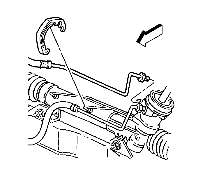 11. Remove the power steering return line from the clamp on the power steering gear.
