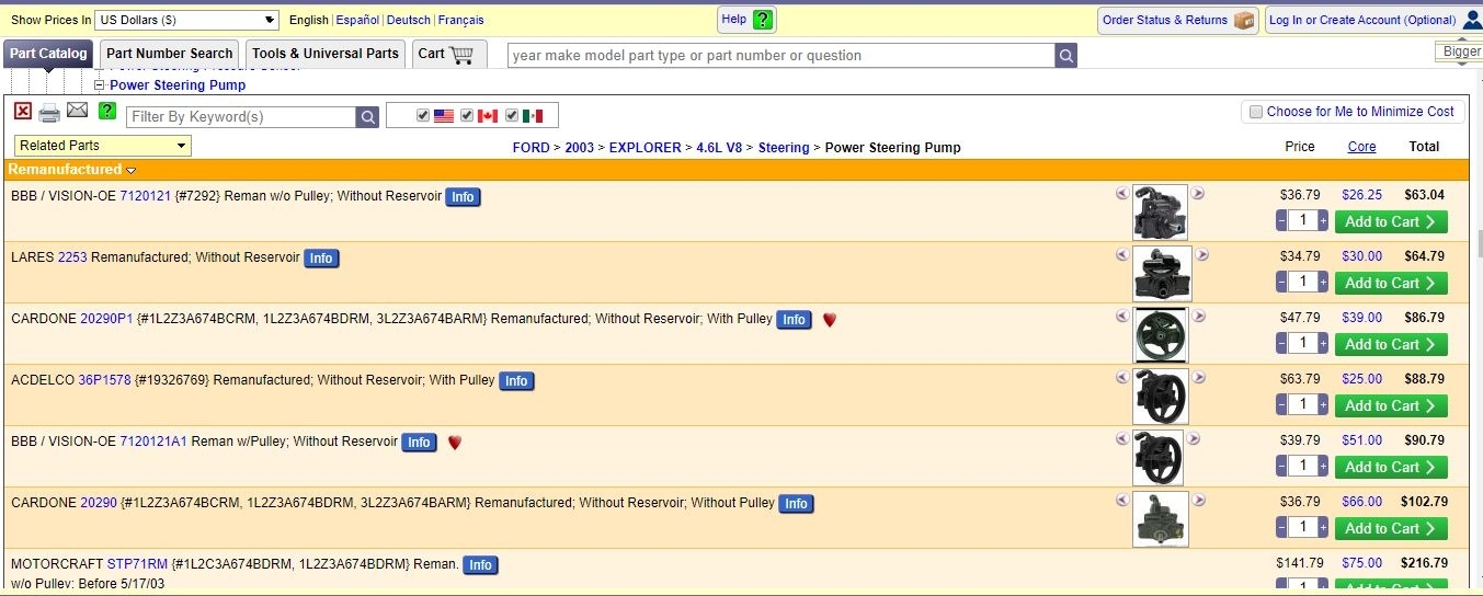 Are you looking for a power steering pump for your vehicle? I've attached 2 pictures below. Hope this helps and thanks for using 2CarPros.