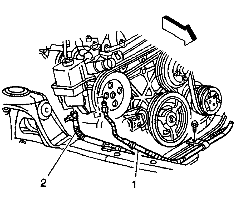 5. Disconnect the power steering pressure hose (1) from the power steering pump.