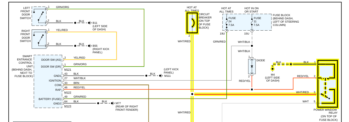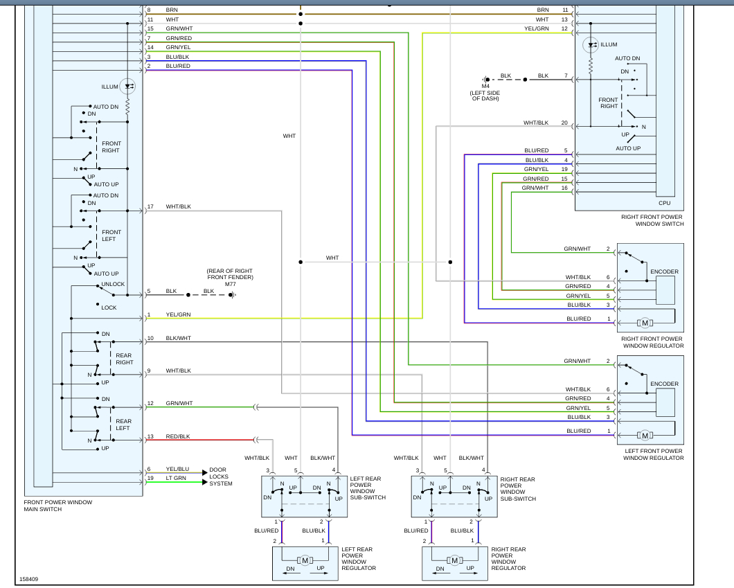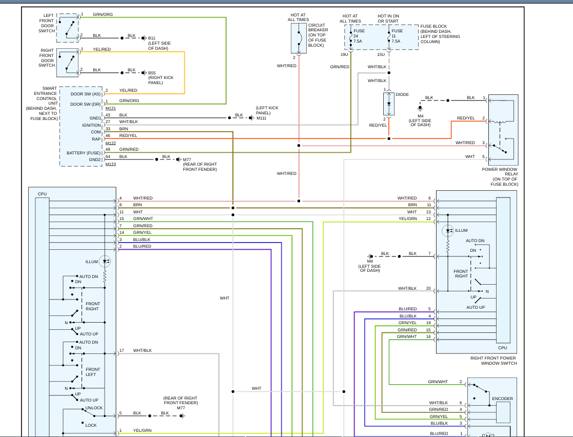 All the other windows and locks work. There is a 40 amp fuse under the hood on the right side for the windows, it's good. I cannot find no other fuses. Is there any fusible links?