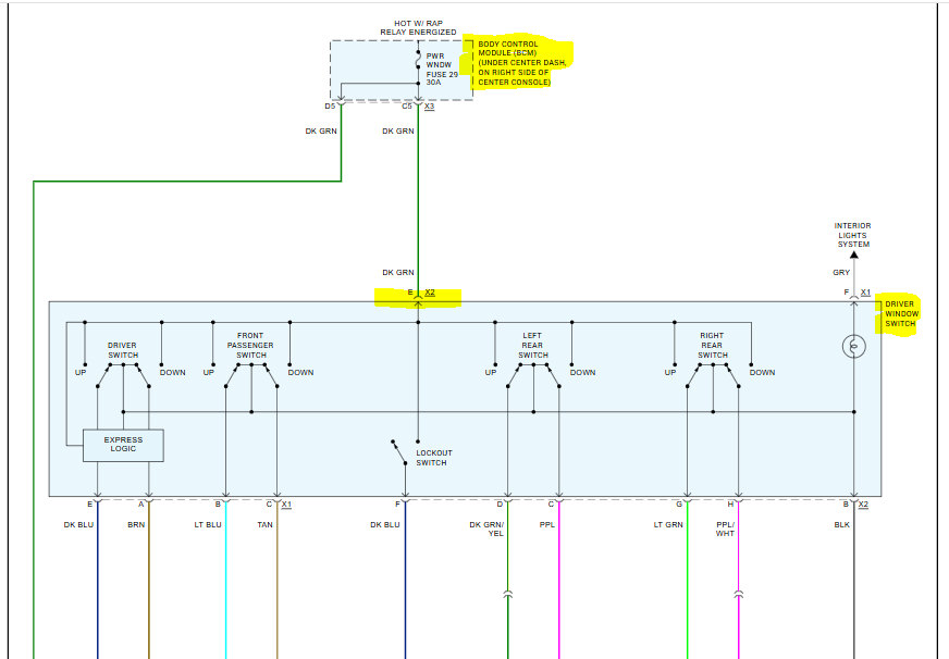 Not sure why the windows are not going up. The window switches at each door are also not responsive but the power locks are.