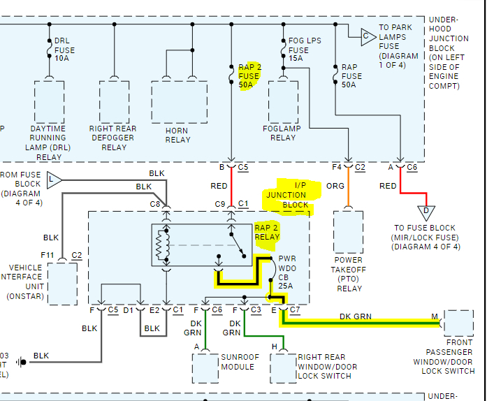 In the video above, the top two pins had power, and the bottom right pin also had power. That is where the RAP 2 relay plugs into. The 25 Amp circuit breaker is right below it. When I checked the power to the circuit breaker, neither pin had power. Looking at one of the wiring diagrams that you sent, it looks like Pin 30 provides power to the 25 Amp circuit breaker. My question is, is there only one wire providing power to the circuit breaker? Meaning that once power gets to it, it fires?