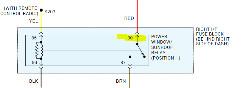 If you look at pic 3 below, it is an enlarged pic of the relay (right side of dash relay box). Note there are 4 numbers indicated. When you remove the relay, it will have numbers on it the same as indicated in the picture. Determine which is pin 30 and using a test light, see if there is power present with the key in the run position (engine off).