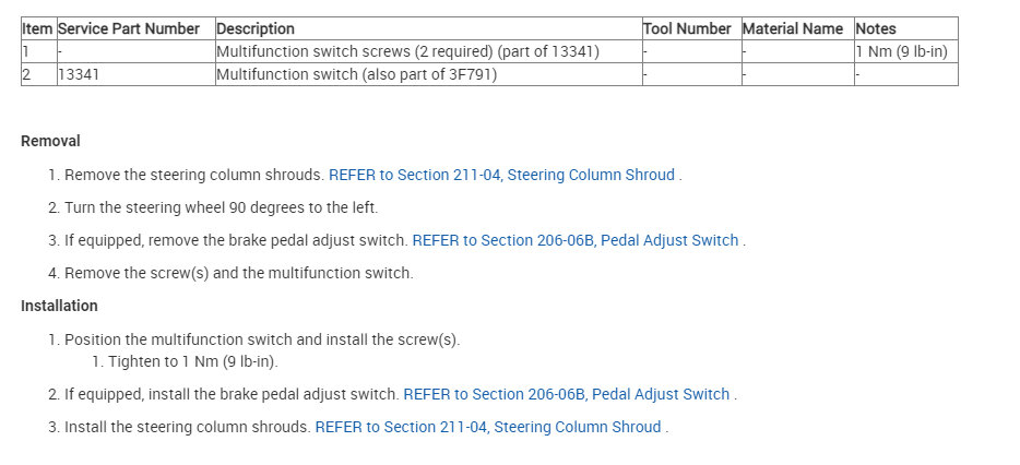 I attached the directions for replacing the signal/ multi-function switch below. This is one of the easier ones to replace.