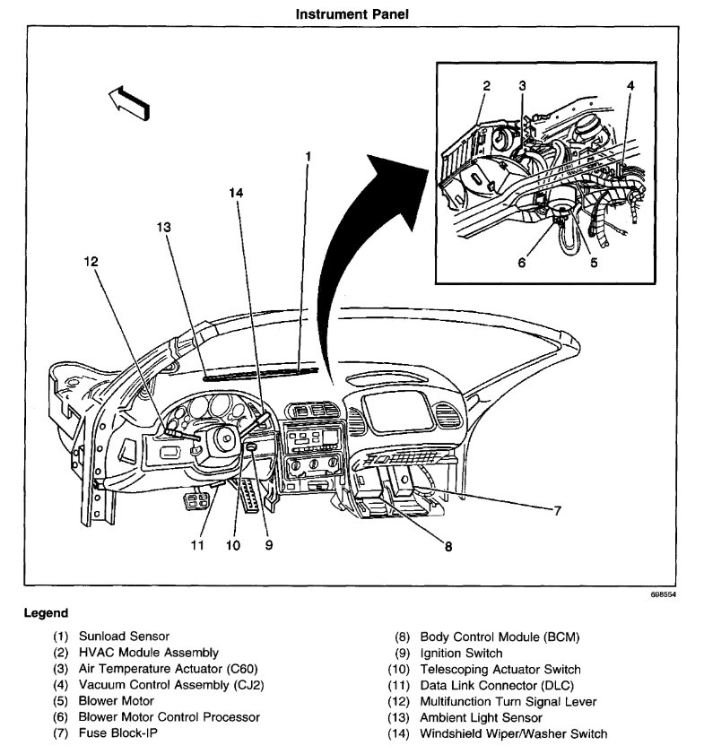 PERFORMANCE TESTS A/C PERFORMANCE TEST The following test measures the A/C system operating efficiency by comparing: à   The current ambient air temperature. à   The current relative humidity. à   The high side pressure of the A/C system. à   The low side pressure of the A/C system. à   The temperature of the air being discharged into the passenger compartment. 1. Park the vehicle inside or in the shade. Open the windows in order to ventilate the interior of the vehicle. If the A/C system was operating, allow the A/C system to equalize (about 2 minutes). Ensure that the ignition key is in the OFF position. Install the ACR 2000 Air Conditioning Service Center. Record the ambient air temperature displayed on the ACR 2000 Air Conditioning Service Center. Record readings of the low and high side static pressures. Are both the low and high side pressures within the specified value? à   Above 60 °F (16 °C) - 50 psi (345 kPa). à   Above 75 °F (24 °C) - 70 psi (483 kPa). à   Above 90 °F (33 °C) - 100 psi (690 kPa). If so, go to step 2 . If not, check for leaks. See LEAK TESTING in GENERAL SERVICING PROCEDURES article in GENERAL SERVICING. 2. Close the vehicle doors and windows. Open the driver door window 5-6 in (12.7-15.2 cm). Set the HVAC control to A/C in RECIRCULATION, Dual Zone system OFF, blower control to the highest position, HVAC control assembly to discharge air through the A/C outlets, temperature control to the coldest position and All A/C outlets open. Install temperature probes of the ACR 2000 Air Conditioning Service Center in the left and right center A/C air outlets. NOTE: Tools Required: ACR 2000 Air Conditioning Service Center (J-43600) or equivalent. NOTE: The ambient air temperature must be at least 60 °F (16 °C). Do not induce additional air flow across the front of the vehicle during the test. If you were sent here from a DTC diagnostic table, clear the DTC upon completion of this test. NOTE: When using the print function of the ACR 2000 Air Conditioning Service Center for this step it is necessary to press reset button before pressing the print button after the 5 minute operating time in order to capture the correct information. NOTE: Record the relative humidity and the ambient air temperature at the time of the test.
