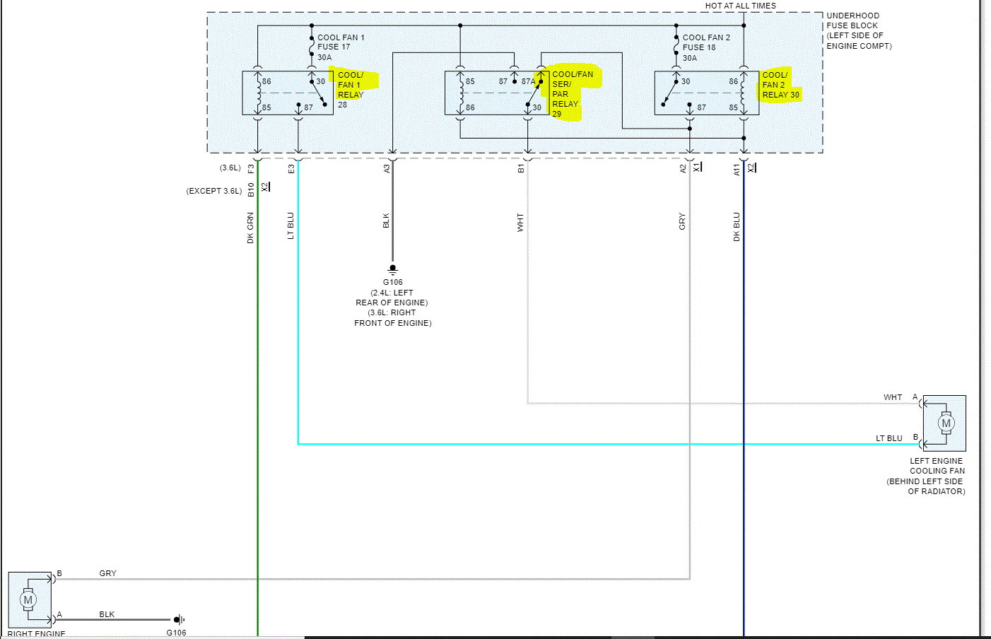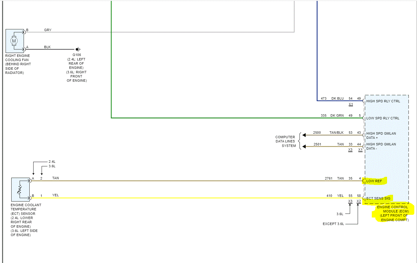 I attached a copy of the cooling fan wiring schematic. It included all components related except the gauge itself. Go to the body control module (BCM) and make sure there are no issues with wiring there. Also, confirm there is nothing wrong with the connection such as a loose connector, damaged wiring, and corrosion at the connector.