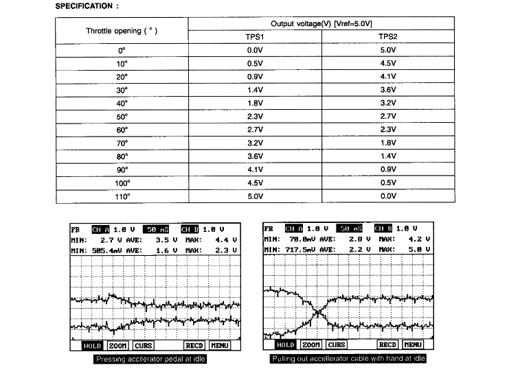2. Monitor signal waveform of TPS by stepping on and oft the accelerator pedal on scantool