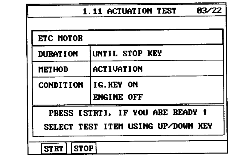 3. After IG "ON", execute the "ETC motor actuation test" by Scantool.