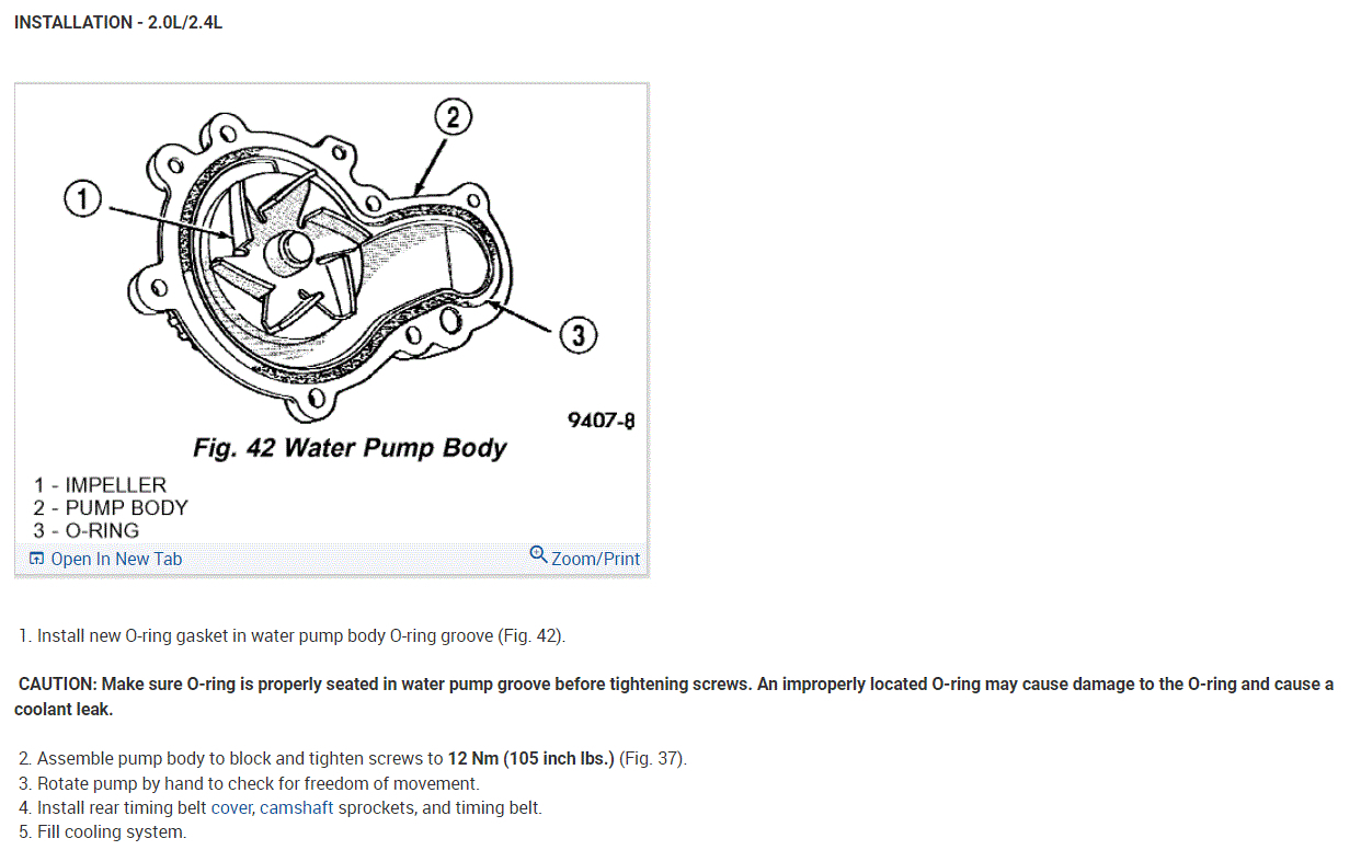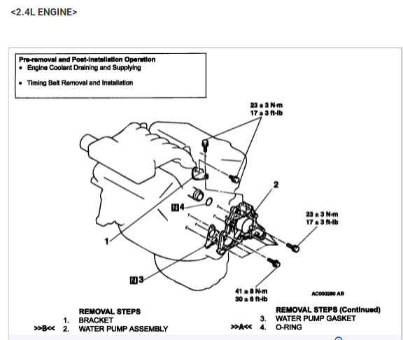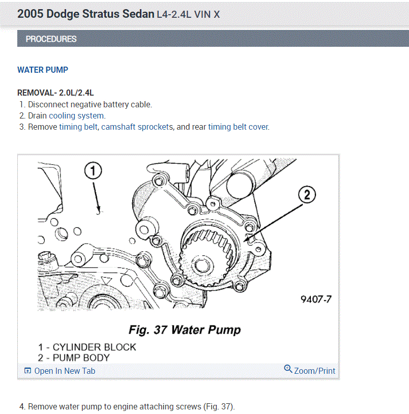 I attached the directions below for replacing the pump. Note the first section is simply the pump replacement. The remaining directions are related to the removal and replacement of the timing belt. This would be a good time to replace the belt if you want.