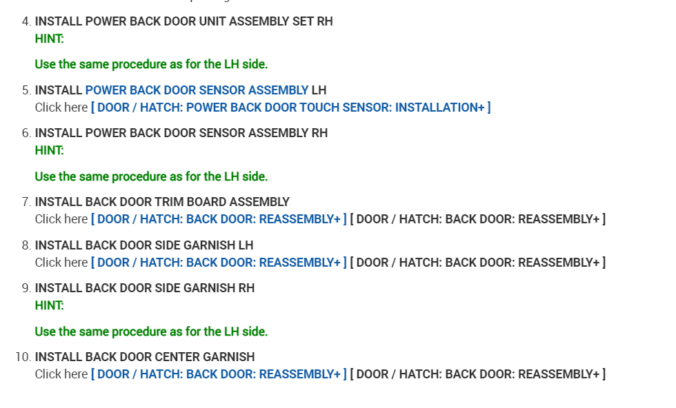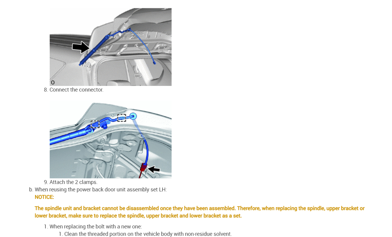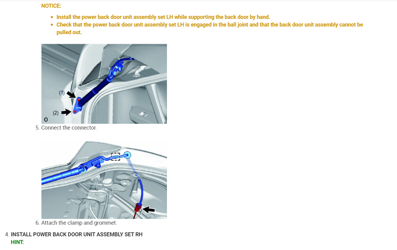 A wire harness of the power back door system is disconnected and reconnected.