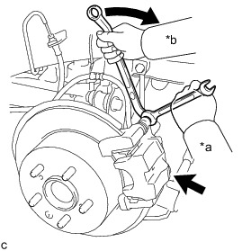 Hold the rear disc brake cylinder slide pin, and remove the 2 bolts and rear disc brake cylinder assembly.