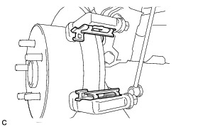 Remove the 2 rear disc brake pads with rear disc brake anti-squeal shim kit from the disc brake cylinder mounting.