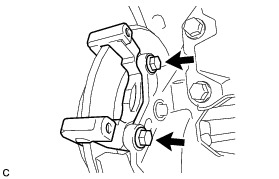 Remove the 2 rear disc brake pad support plates from the disc brake cylinder mounting.
