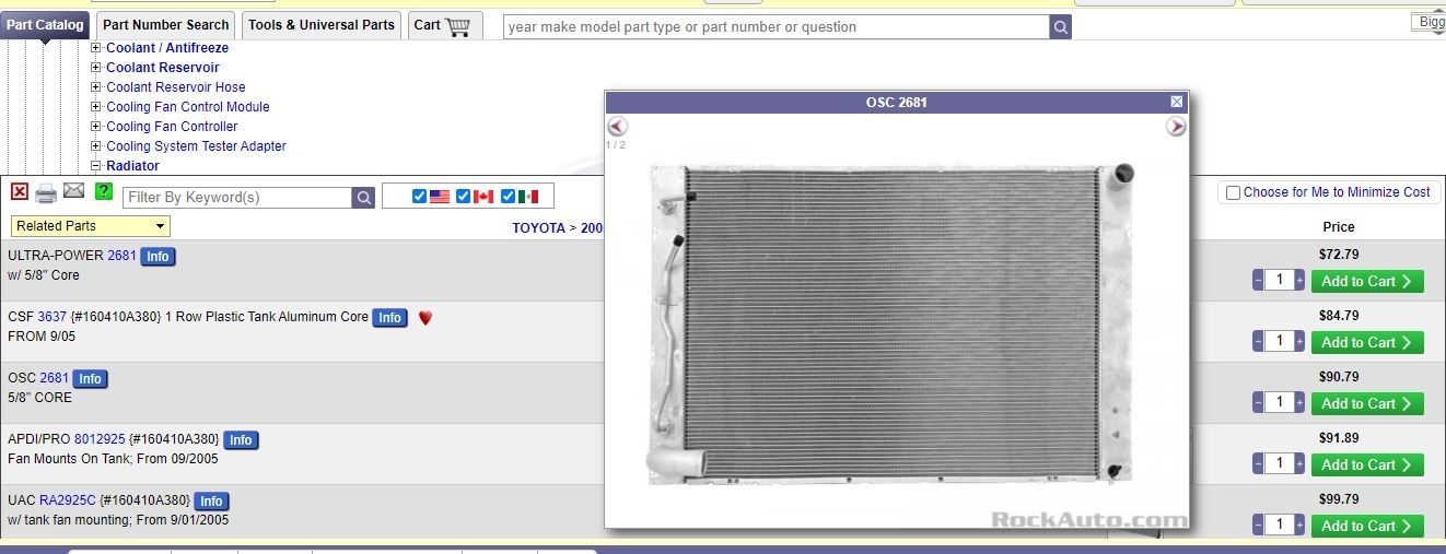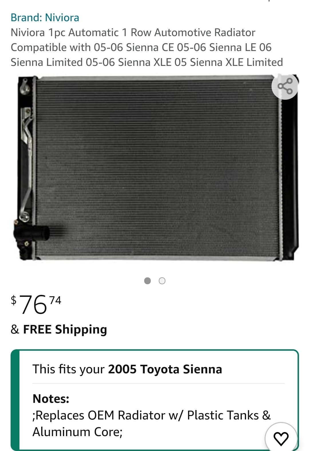 The radiator is about $80.00 to $125.00 depending n the radiator.