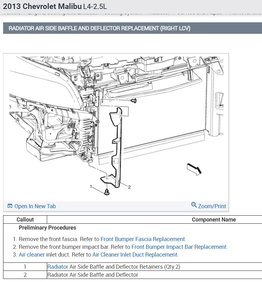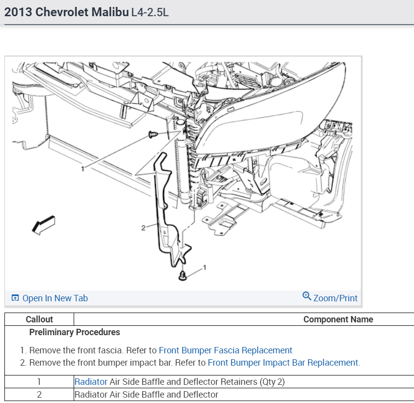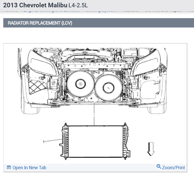 Radiator, R&R-- 3.8 hrs@ shop rate. This is because most of the front body/bumpers must be removed first. Check out the images (below). Please let us know if you need anything else to get the problem fixed.