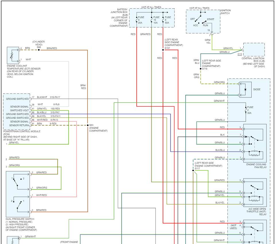 The problem is, when I start the car both of the fans run all the time, I've checked temperature sensor, high pressure switch, wiring, fan resistor, relays. Everything looks fine but I'm getting out of my mind. The heater setting is set to face and floor, and heater fan is turned off so demist function can't work. I don't know what to do.