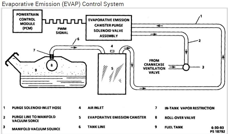 This diagnostic trouble code (DTC) is a generic powertrain code, which means that it applies to OBD-II equipped vehicles. Although generic, the specific repair steps may vary depending on make/model. This indicates that a part of the EVAP control system is no longer functioning correctly. The EVAP system consists of many parts, including (but not limited to) the gas cap, fuel lines, carbon canister, purge valve, and other hoses The (EVAP) emission control system prevents the escape of fuel vapors from a vehicle's fuel system. Fuel vapors are routed by hoses to a charcoal canister for storage. Later, when the engine is running a purge control valve opens allowing intake vacuum to siphon the fuel vapors into the engine.
