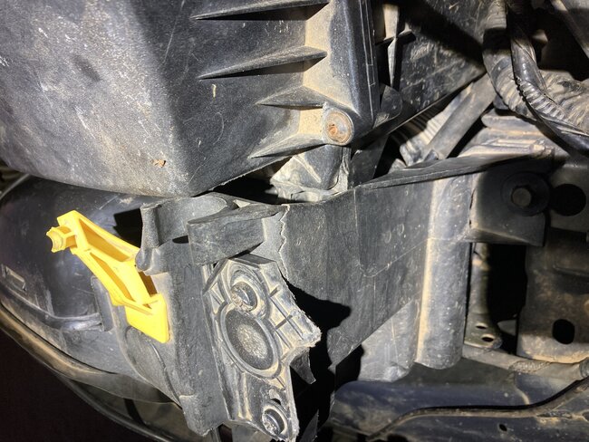 I am having a little trouble, figuring out where the radiator core support assembly sits at, and how all the other parts connect up to it and what all other part and what all other parts do connect to it somebody borrowed my car, wrecked it and left me with a problem. I’ve got the radiator support in there. It looks to be too high, maybe and not out far enough and the top pieces are broken so it’s hard to align everything up I’m having to work with what I’ve got and what I can afford and that’s pretty much piecing it together broken or not.