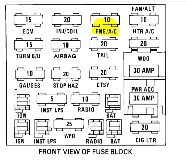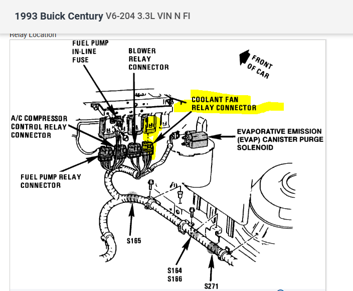 Additionally, I attached a pic of the fuse box and highlighted the fuse to check. Also, I attached a pic of the fan relay, which are located under the hood on the firewall.