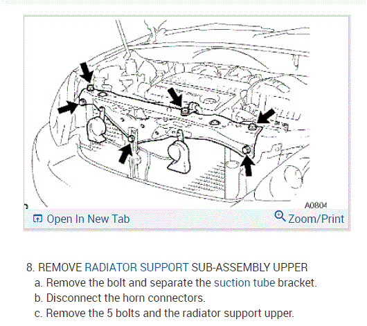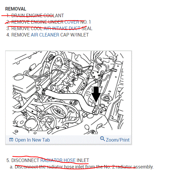 I attached the directions below from the radiator removal and replacement. Take a look through them and let me know if they help.