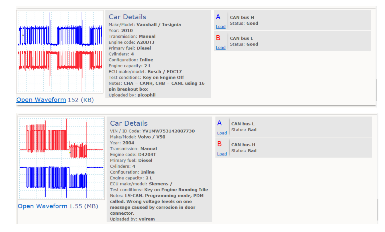 This first example is a known good (upper) and known bad (lower) from the Pico library,
