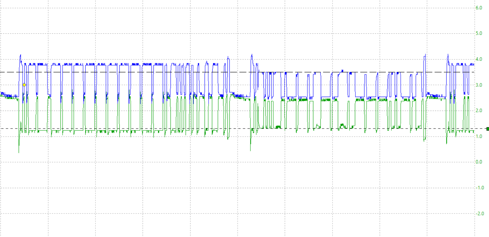 Waveforms 4, 5, 6 you can see I started to measure the voltage levels of each message packet, this is how you can tell the different modules talking on the network, some modules will have slightly different voltage levels depending on the wiring to that module or the distance from the data link connector, also any possible corrosion in connectors, But Can bus is a very robust 2 wire network and will still be able to transmit even with some wiring issues. Which is why this vehicle still running fine and still does, but it's obvious there's some wiring issues somewhere. In some cases, you will see much more obvious slopes in the waveform, or a waveform that is completely distorted.