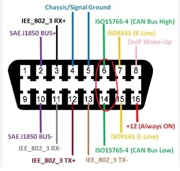 One last thing, your can bus resistance should not be 120 ohms, it should be 60 ohms between Can High and Can Low, so with the key Off, measuring between pins 6 and 14 should read 60 ohms. If you are reading 120 between 6 and 14, then one side of the network is open. You are reading 1 terminating resistor on the network. There should be (2) 120-ohm resistors in Parallel. It's also best to read the resistance of the network with the battery disconnected, stray voltage will change your ohms reading,