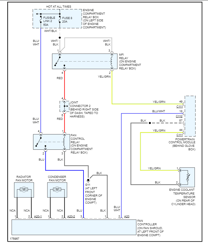 Yes, you can ground the blu/wht wire from the controller and the fans should come on, you might want to check the ground wire to the controller as well, here is the wiring diagram so you can see how the system works. Check out the images (below). Please let us know what you find.