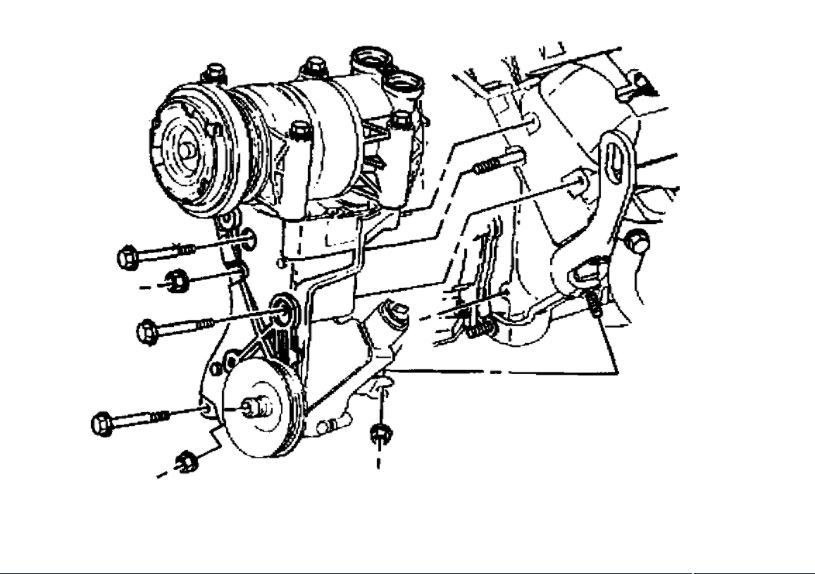6. Remove the three bolts and the nut holding the power steering pump mounting bracket to the engine.