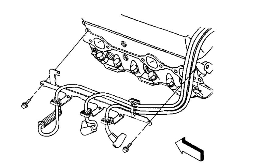 11. Remove the spark plug wire harness and the spark plug wire support.