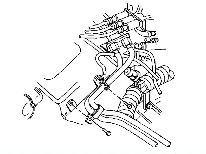 15. Remove the bolt holding the fuel pipe bracket to the rear of the cylinder head.