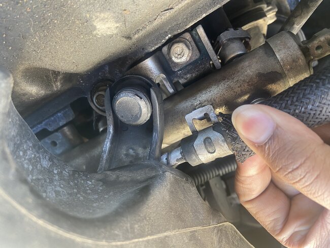 The hose is from the reservoir, correct? Is there any evidence of a leak that could be reaching the serpentine belt?