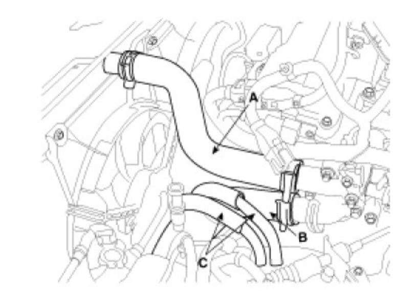 3. Remove the ATF(Automatic Transaxle Fluid) oil cooler hoses(C). (A/T)