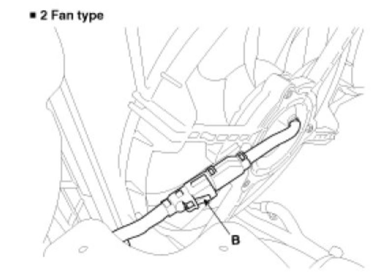 5. Remove the cooling fan mounting bolt(A,B) and remove cooling fan.