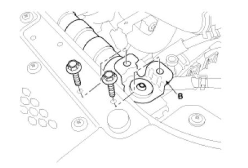 6. Remove the radiator upper bracket(A,B), then pull up the radiator.