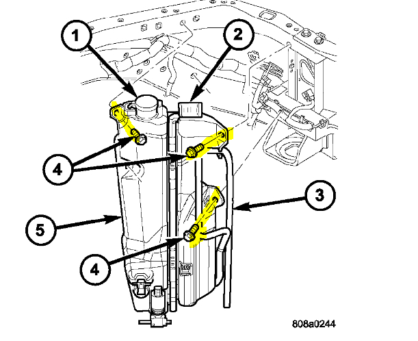 The reservoir tank is held by three bolts. To separate the tank from the body of the vehicle, remove them and then the hoses that are attached.